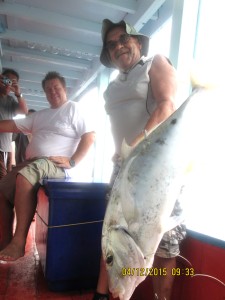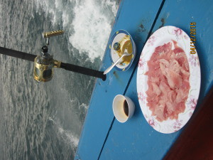 We prepare tasty meal from catch like fresh Sashimi with Wasabi, Hot Smoked Fish with bred, Tom Yam fish head soup. Everybody had a huge catch to take back home.